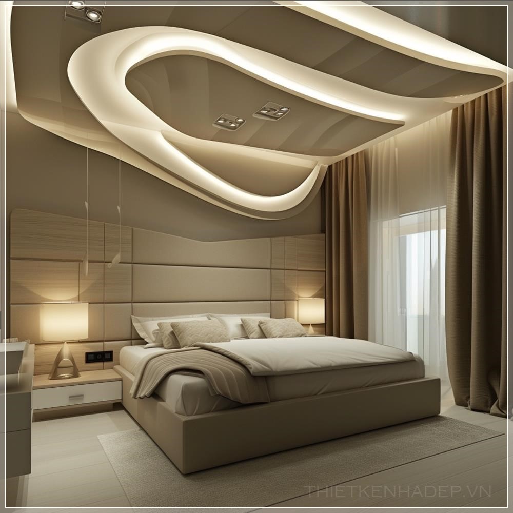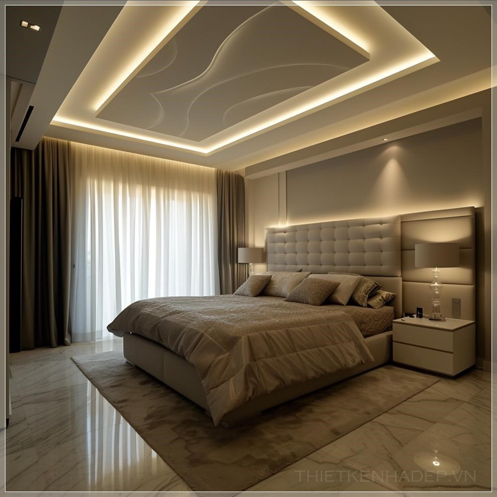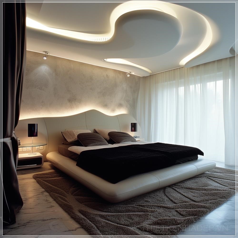 PROMPT: Modern style bedroom with dense lighting on the ceiling --v 6.0 Ý Nghĩa: