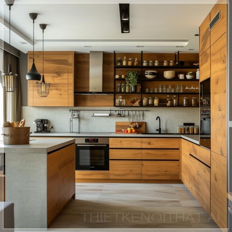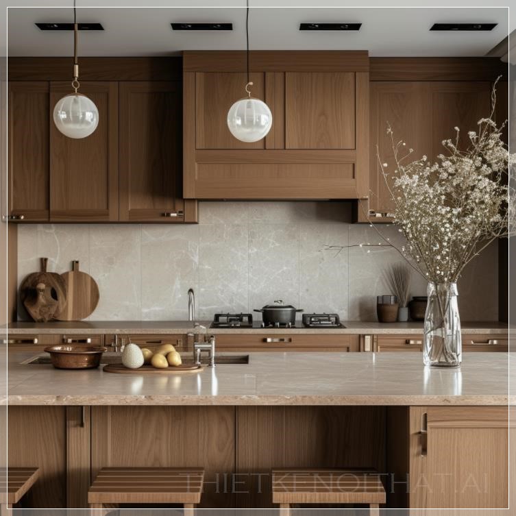 PROMPT: american contemporary wooden kitchen with decor and decorative sets, photosession, interior photography --v 6.0 Ý Nghĩa: Nhà bếp gỗ hiện đại kiểu Mỹ với đồ trang trí và bộ trang trí, buổi chụp ảnh, nhiếp ảnh nội thất.
