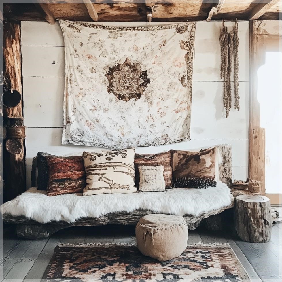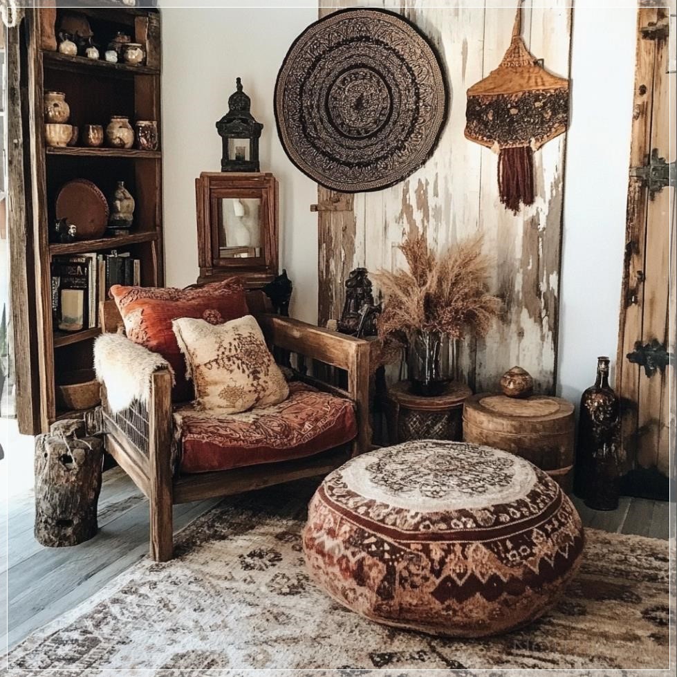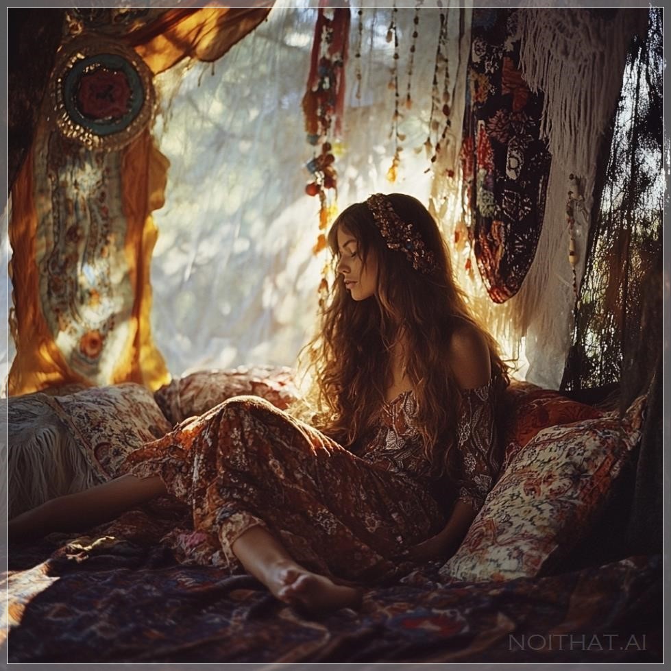 PROMPT: inspiration mood boars--ar 16:9 Ý Nghĩa: Cảm hứng thiết kế boho cho không gian nội thất: Sử dụng ánh sáng và vật liệu tự nhiên Nội dung