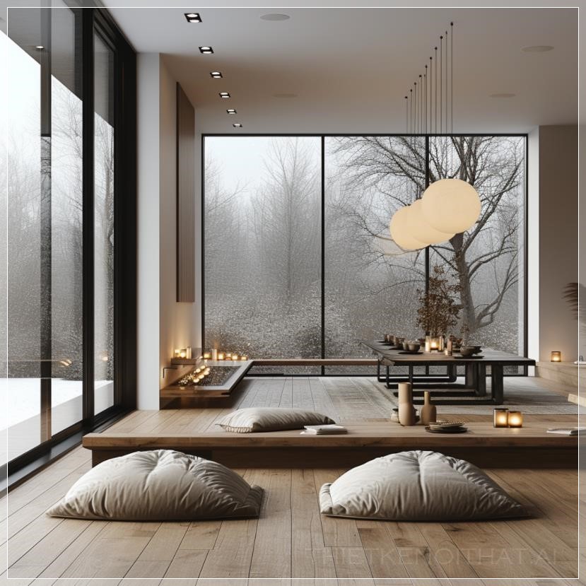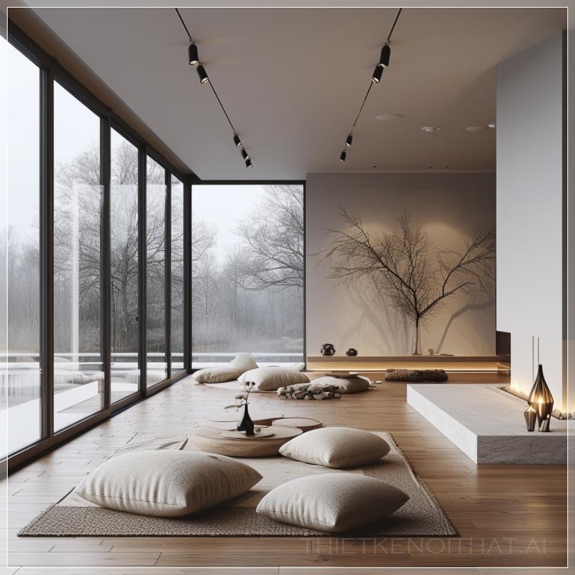 PROMPT: minimal white livingroom with big windows , rainy mode , puffi chair , people --s 250 --v 6.0 --style raw Ý Nghĩa: